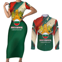 Bulgaria Liberation Day Couples Matching Short Sleeve Bodycon Dress and Long Sleeve Button Shirt with Shipka Monument and Tricolor Lion Graphic