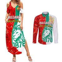 Bulgaria Liberation Day Couples Matching Summer Maxi Dress and Long Sleeve Button Shirt Lion With Rose Flag Style