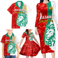Bulgaria Liberation Day Family Matching Long Sleeve Bodycon Dress and Hawaiian Shirt Lion With Rose Flag Style