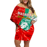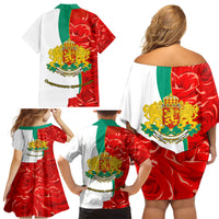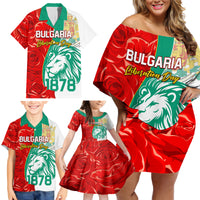 Bulgaria Liberation Day Family Matching Off Shoulder Short Dress and Hawaiian Shirt Lion With Rose Flag Style