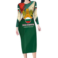 Bulgaria Liberation Day Long Sleeve Bodycon Dress with Shipka Monument and Tricolor Lion Graphic TS04