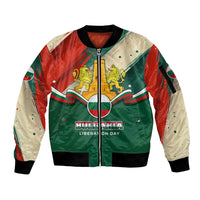 Bulgaria Liberation Day Sleeve Zip Bomber Jacket with Shipka Monument and Tricolor Lion Graphic TS04
