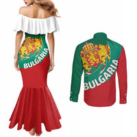 Bulgaria Lion Couples Matching Mermaid Dress and Long Sleeve Button Shirt Bulgarian Coat Of Arms