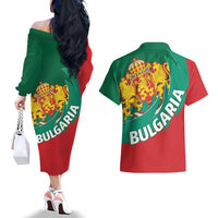 Bulgaria Lion Couples Matching Off The Shoulder Long Sleeve Dress and Hawaiian Shirt Bulgarian Coat Of Arms