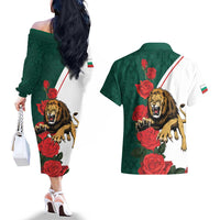 Bulgaria Lion Couples Matching Off The Shoulder Long Sleeve Dress and Hawaiian Shirt Folk Patterns With Rose