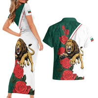Bulgaria Lion Couples Matching Short Sleeve Bodycon Dress and Hawaiian Shirt Folk Patterns With Rose