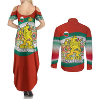 Bulgaria Lion Couples Matching Summer Maxi Dress and Long Sleeve Button Shirt Tricolor Flag, Folk Pattern and Proud Motto TS04
