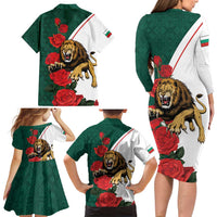 Bulgaria Lion Family Matching Long Sleeve Bodycon Dress and Hawaiian Shirt Folk Patterns With Rose