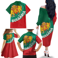 Bulgaria Lion Family Matching Off The Shoulder Long Sleeve Dress and Hawaiian Shirt Bulgarian Coat Of Arms