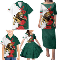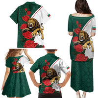 Bulgaria Lion Family Matching Puletasi and Hawaiian Shirt Folk Patterns With Rose