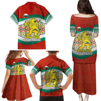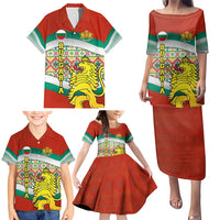 Bulgaria Lion Family Matching Puletasi and Hawaiian Shirt Tricolor Flag, Folk Pattern and Proud Motto