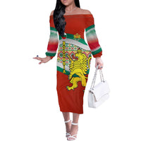 Bulgaria Lion Off The Shoulder Long Sleeve Dress Tricolor Flag, Folk Pattern and Proud Motto TS04