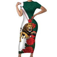 Bulgaria Lion Short Sleeve Bodycon Dress Folk Patterns With Rose LT18