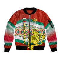 Bulgaria Lion Sleeve Zip Bomber Jacket Tricolor Flag, Folk Pattern and Proud Motto