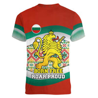 Bulgaria Lion Women V-Neck T-Shirt Tricolor Flag, Folk Pattern and Proud Motto TS04