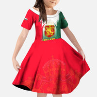 Bulgaria National Crest Kid Short Sleeve Dress with Tricolor Design and Folk Cuff Pattern TS04
