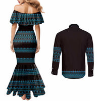 Bulgaria Traditional Pattern Blue Couples Matching Mermaid Dress and Long Sleeve Button Shirt Balkan Culture LT01
