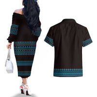 Bulgaria Traditional Pattern Blue Couples Matching Off The Shoulder Long Sleeve Dress and Hawaiian Shirt Balkan Culture