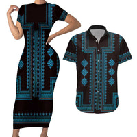 Bulgaria Traditional Pattern Blue Couples Matching Short Sleeve Bodycon Dress and Hawaiian Shirt Balkan Culture LT01