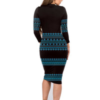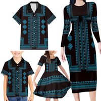 Bulgaria Traditional Pattern Blue Family Matching Long Sleeve Bodycon Dress and Hawaiian Shirt Balkan Culture LT01