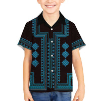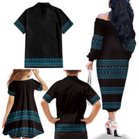 Bulgaria Traditional Pattern Blue Family Matching Off The Shoulder Long Sleeve Dress and Hawaiian Shirt Balkan Culture