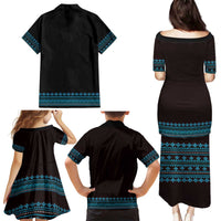 Bulgaria Traditional Pattern Blue Family Matching Puletasi and Hawaiian Shirt Balkan Culture