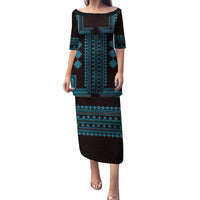 Bulgaria Traditional Pattern Blue Family Matching Puletasi and Hawaiian Shirt Balkan Culture LT01
