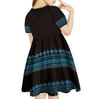 Bulgaria Traditional Pattern Blue Kid Short Sleeve Dress Balkan Culture LT01