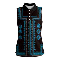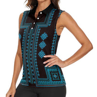 Bulgaria Traditional Pattern Blue Women Sleeveless Polo Shirt Balkan Culture