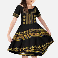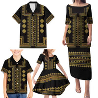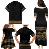 Bulgaria Traditional Pattern Gold Family Matching Puletasi and Hawaiian Shirt Balkan Culture