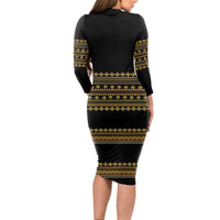 Bulgaria Traditional Pattern Gold Long Sleeve Bodycon Dress Balkan Culture LT01
