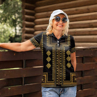 Bulgaria Traditional Pattern Gold Women Polo Shirt Balkan Culture