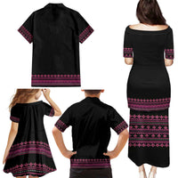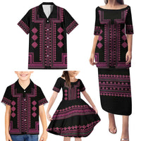 Bulgaria Traditional Pattern Pink Family Matching Puletasi and Hawaiian Shirt Balkan Culture