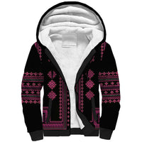 Bulgaria Traditional Pattern Pink Sherpa Hoodie Balkan Culture LT01