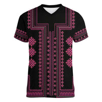 Bulgaria Traditional Pattern Pink Women V-Neck T-Shirt Balkan Culture LT01