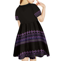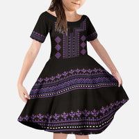 Bulgaria Traditional Pattern Purple Kid Short Sleeve Dress Balkan Culture LT01