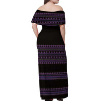 Bulgaria Traditional Pattern Purple Off Shoulder Maxi Dress Balkan Culture