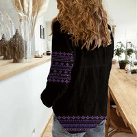 Bulgaria Traditional Pattern Purple Women Casual Shirt Balkan Culture