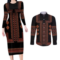 Bulgaria Traditional Pattern Red Couples Matching Long Sleeve Bodycon Dress and Long Sleeve Button Shirt Balkan Culture LT01