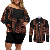 Bulgaria Traditional Pattern Red Couples Matching Off Shoulder Short Dress and Long Sleeve Button Shirt Balkan Culture LT01