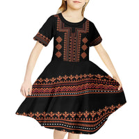 Bulgaria Traditional Pattern Red Kid Short Sleeve Dress Balkan Culture LT01