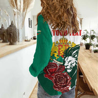 Bulgaria Women Casual Shirt Coat of Arms Lion with Roses