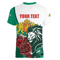 Bulgaria Women V-Neck T-Shirt Coat of Arms Lion with Roses LT01