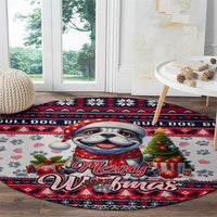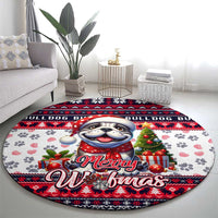 Bulldog Merry Woofmas Round Carpet Christmas Dog Art Style DT02