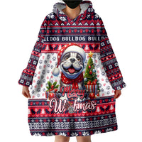 Bulldog Merry Woofmas Wearable Blanket Hoodie Christmas Dog Art Style