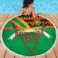 Burkina Faso Beach Blanket with Green Tribal Pattern Design and National Flag Motif
