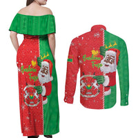 Burkina Faso Christmas Couples Matching Off Shoulder Maxi Dress and Long Sleeve Button Shirt Black Santa Joyeux Noel LT15