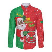 Burkina Faso Christmas Long Sleeve Button Shirt Black Santa Joyeux Noel
