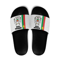 Ready to own your look? Order your pair of Burkina Faso Striped Slide Sandals African Mud Cloth Pattern - White today and walk in confidence.