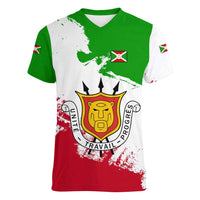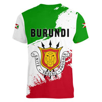 Burundi Flag Women V-Neck T-Shirt with National Emblem and Motto Unité Travail Progres